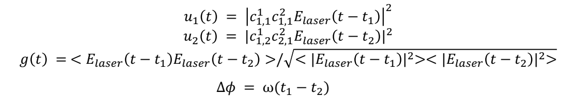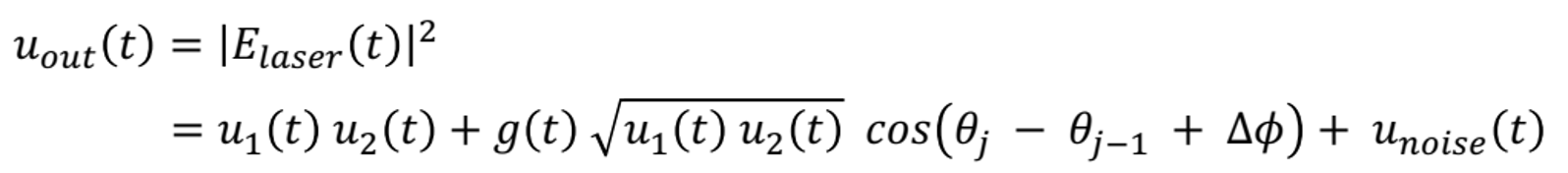 and unoise(t) is the classical background noise added to the output signal power.